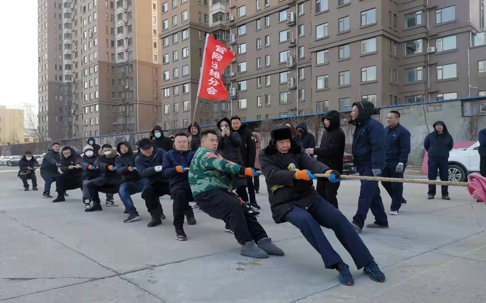 1月26日上午8:20分,集團(tuán)公司領(lǐng)導(dǎo)與基層工會(huì)干部和會(huì)員近400人,集聚于公司樓前廣場(chǎng),相繼展開了“力拔山兮拔大河”和“愛的魔力傳遞”兩項(xiàng)團(tuán)體活動(dòng)。“力拔山兮拔大河”:各隊(duì)秉著“友誼第一,比賽第二”的原則,當(dāng)比賽的哨聲一響起,雙方隊(duì)員們使出渾身力氣把繩子向后拉,繩子中間的紅繩左右搖擺。兩邊隊(duì)員都整齊地往后倒、向后退,旗手、安全員也在隊(duì)伍旁邊助陣加油,場(chǎng)上助力吶喊聲浪如潮……“愛的魔力傳遞”體驗(yàn)的是個(gè)人積極與同伴合作,多人通過轉(zhuǎn)圈圈將紅布條纏到隊(duì)友身上,依次接力,分享趣味行走的快樂。場(chǎng)上隊(duì)員集中心智、同心協(xié)力,場(chǎng)外觀眾加油助威、歡呼吶喊,氣氛熱烈。在各參賽隊(duì)的努力下,“力拔山兮拔大河”前四名分別是:管網(wǎng)運(yùn)維中心、站前營業(yè)分公司、通達(dá)管道工程有限公司、第六凈水廠四個(gè)代表隊(duì)。“愛的魔力傳遞”前四名分別是:機(jī)關(guān)三分會(huì)、通達(dá)管道工程有限公司、管網(wǎng)運(yùn)維中心、路南水廠四個(gè)代表隊(duì)。