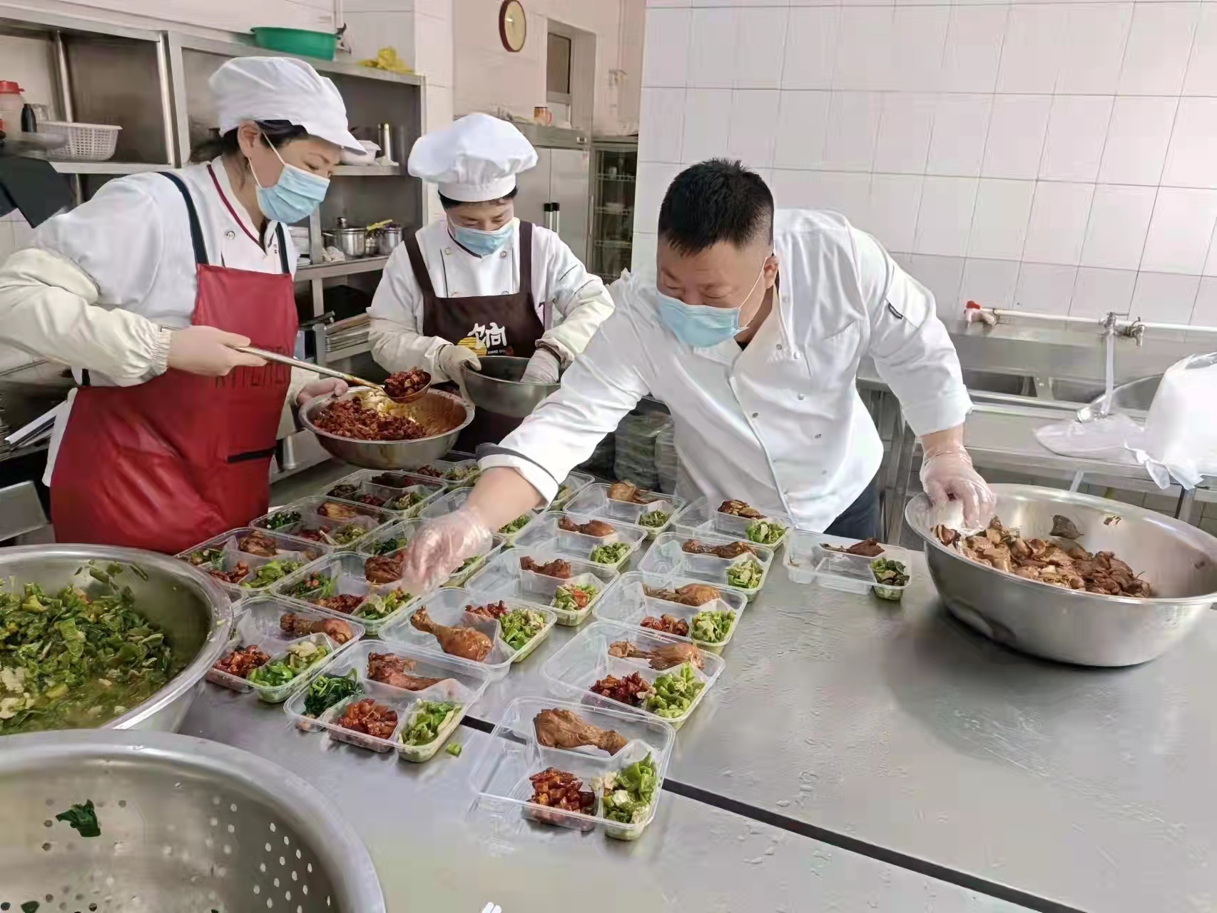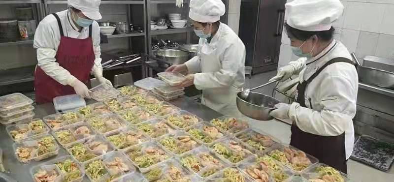 食堂班長蔣玉斌說,“大家都在一線奮斗著,我們也不能放松,要用最擅長的方式為抗擊疫情做力所能及的事。”在他的帶領(lǐng)下,食堂班有需要照顧92歲高齡老父親依然堅持在崗的董玥同志,有將幼小的孩子交給年邁的父母照看的王迎華同志,還有自身傷病卻依舊堅守崗位的于銳同志,他們每天24小時不離崗,舍小家顧大家,在保障基層一線職工營養(yǎng)均衡、葷素搭配、水果酸奶充足供應(yīng)的基礎(chǔ)上及時調(diào)整菜譜,默默用實際行動為疫情防控工作貢獻(xiàn)自身力量。