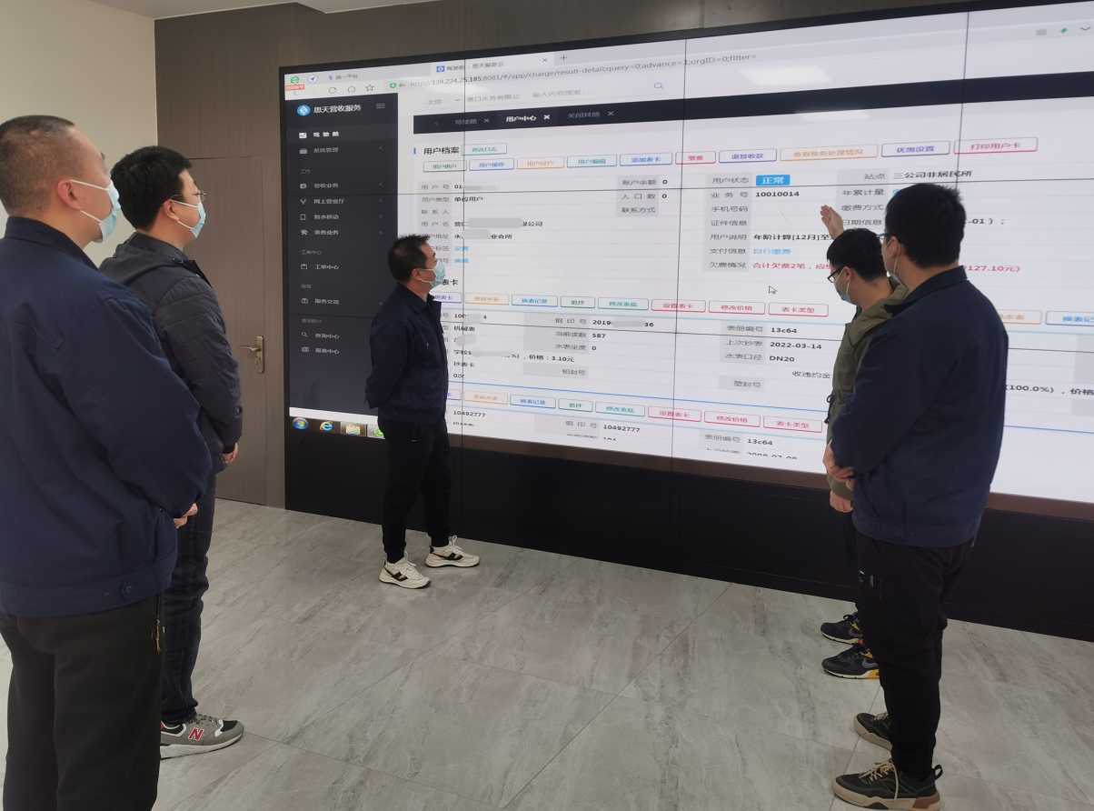 智慧水務(wù)項目營業(yè)收費系統(tǒng)上線進入關(guān)鍵階段,為不影響項目推進,5位信息管理員不分晝夜的對著電腦屏幕,接口調(diào)試、數(shù)據(jù)核對、聯(lián)網(wǎng)測試,保證了系統(tǒng)按時上線。