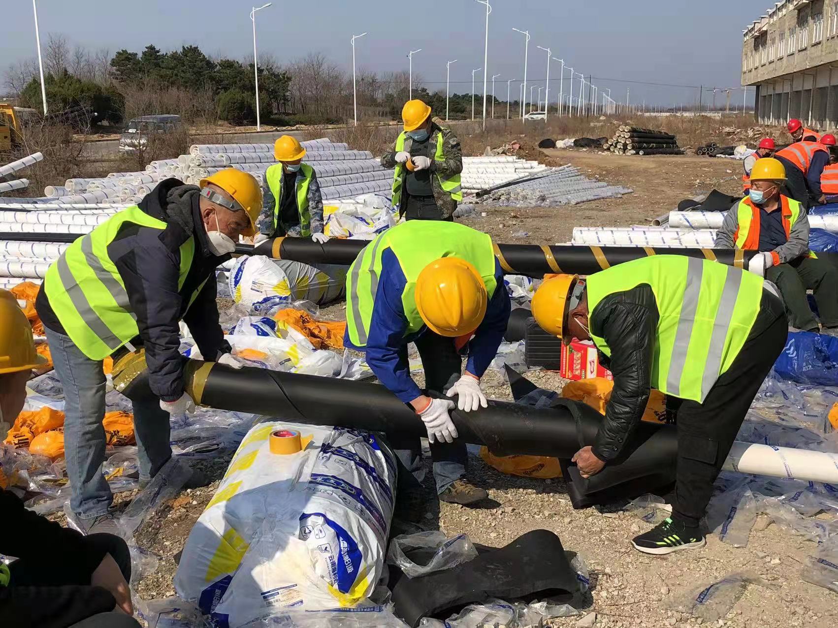 通達公司施工人員、機械和設備連夜進駐營口市健康驛站項目施工現(xiàn)場,提前做好施工前的一切準備工作。工地上,在寒風凜冽的現(xiàn)場,發(fā)動機轟鳴聲不斷,吊車、鏟車、挖溝機忙個不停,全體人員抓進度、搶工期、保質(zhì)量,顧不上吃一口熱乎飯、喝一口熱乎水;指揮室內(nèi),設計人員根據(jù)施工技術(shù)人員現(xiàn)場反饋的問題如火如荼地討論修正著設計圖紙……時間緊、任務重,項目建設現(xiàn)場的每一個人,都仿佛上了發(fā)條一般,鉚足干勁,力爭在最短時間內(nèi)完成供水項目建設。
