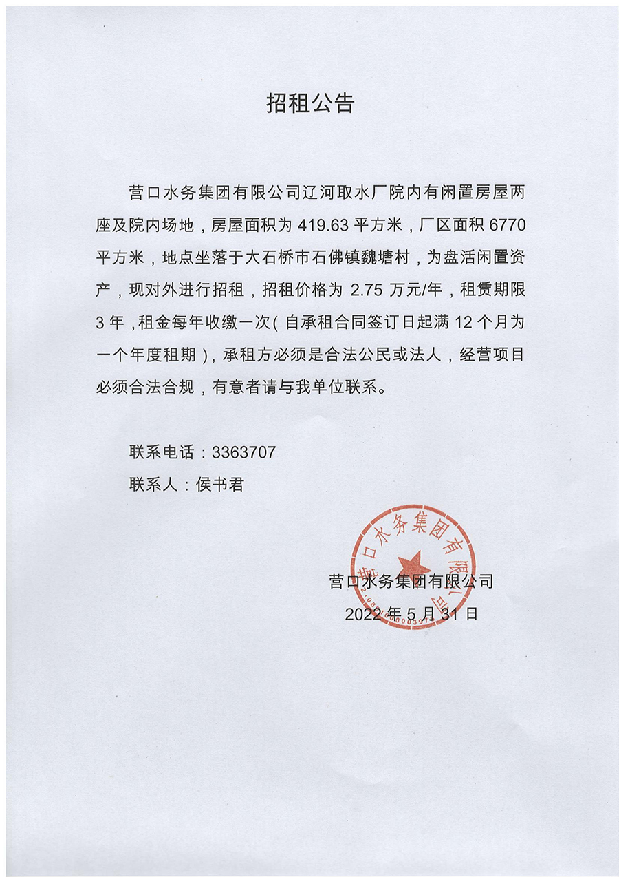 營(yíng)口水務(wù)集團(tuán)有限公司