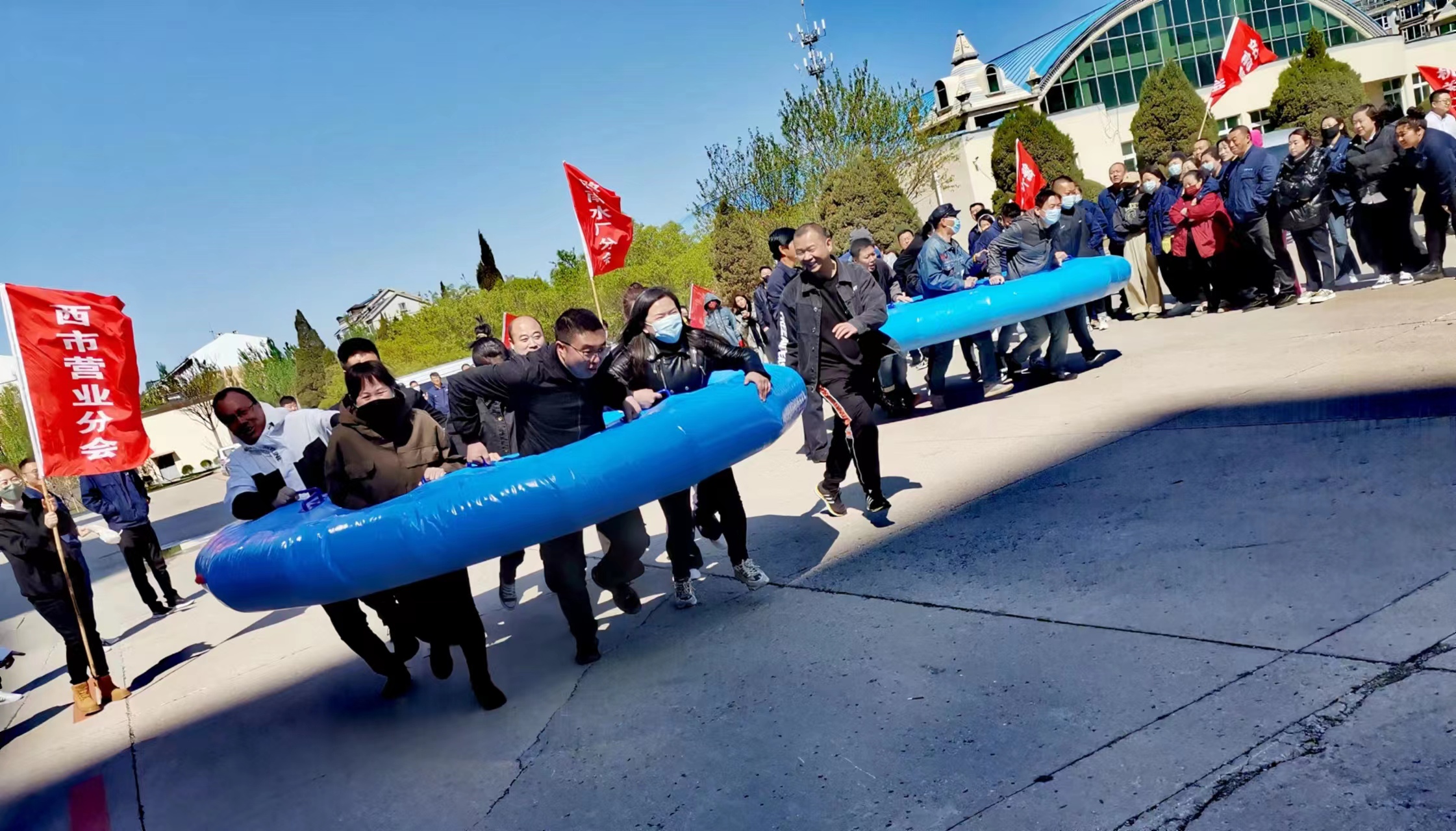 4月26日上午8:20分,集團(tuán)公司領(lǐng)導(dǎo)與基層工會(huì)干部和會(huì)員近500人,集聚于公司樓前廣場,相繼展開了“眾人劃槳開大船”和“八仙過海”兩項(xiàng)趣味性團(tuán)體拓展活動(dòng),寓意和引導(dǎo)眾人心往一處想、勁往一處用,以默契的團(tuán)隊(duì)協(xié)作攻堅(jiān)克難。