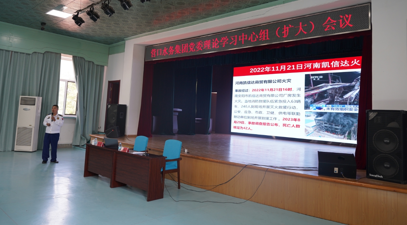 5月19日,營(yíng)口水務(wù)集團(tuán)召開(kāi)黨委理論學(xué)習(xí)中心組(擴(kuò)大)會(huì)議暨消防安全集中整治動(dòng)員部署會(huì)議。集團(tuán)領(lǐng)導(dǎo)班子成員、中層管理人員及各單位班組長(zhǎng)、安全員160余人參加會(huì)議。