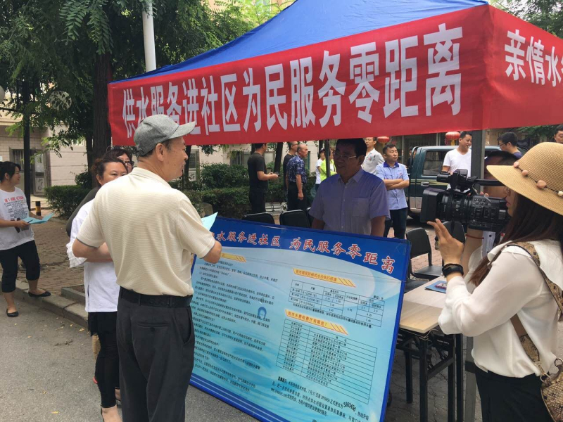 活動(dòng)現(xiàn)場(chǎng),氣氛熱烈,共產(chǎn)黨員們佩戴黨徽,熱情接待小區(qū)內(nèi)用戶的各類咨詢與訴求,用戶對(duì)水務(wù)集團(tuán)工作人員的解答都非常滿意?,F(xiàn)場(chǎng)還設(shè)置了涵蓋供水價(jià)格、用水常識(shí)等內(nèi)容的宣傳版10塊及“供水服務(wù)進(jìn)社區(qū),為民服務(wù)零距離”、“親情水務(wù)、情潤(rùn)萬(wàn)家”、水務(wù)熱線3363456等內(nèi)容的宣傳條幅,“跟著郭明義學(xué)雷鋒,水務(wù)集團(tuán)在行動(dòng)小分隊(duì)”志愿服務(wù)的旗幟迎風(fēng)飄揚(yáng)……