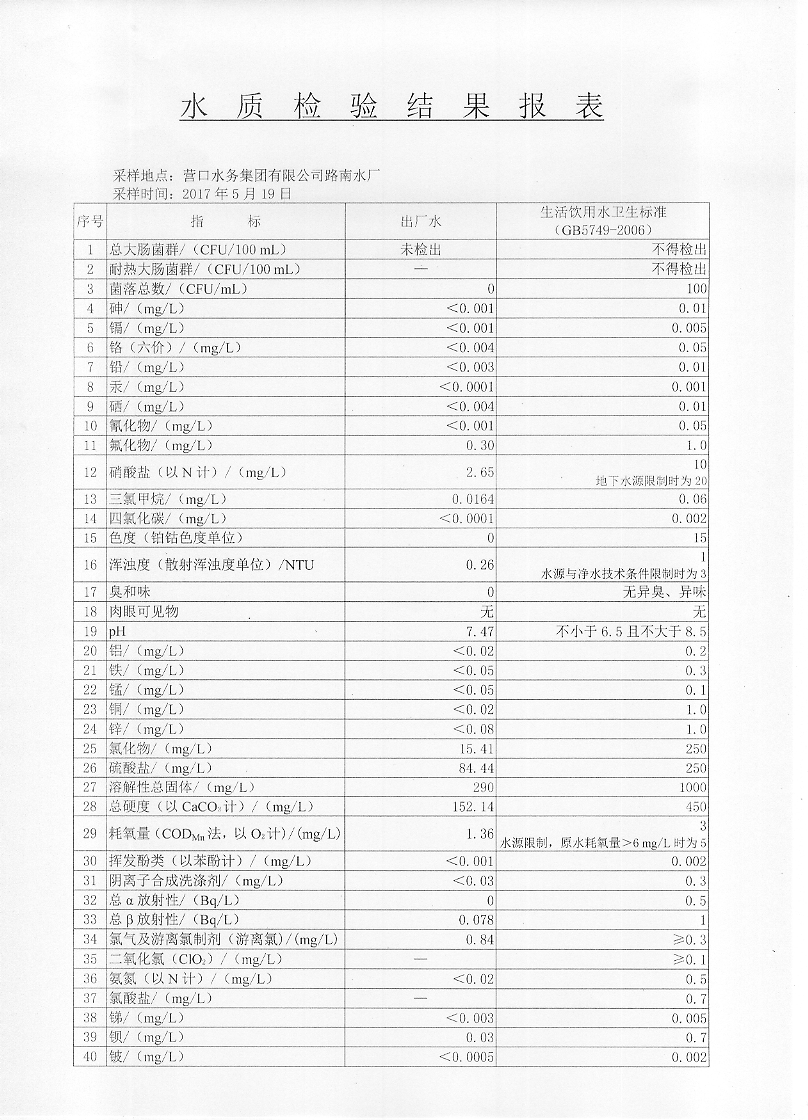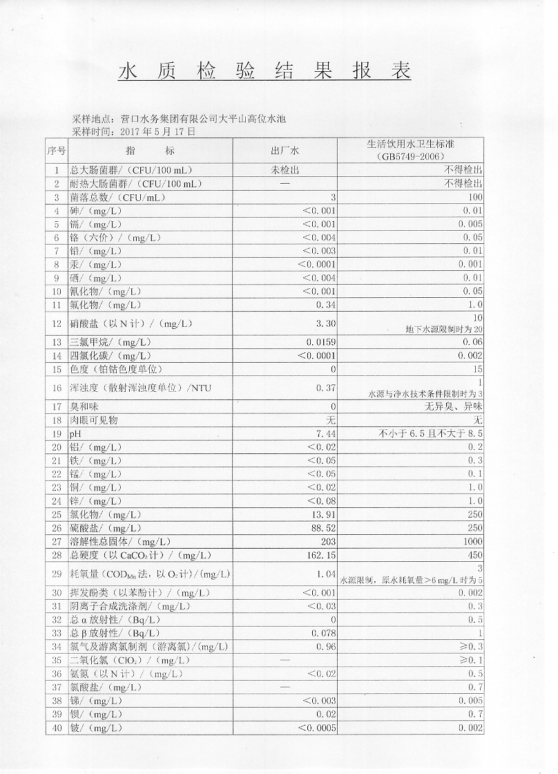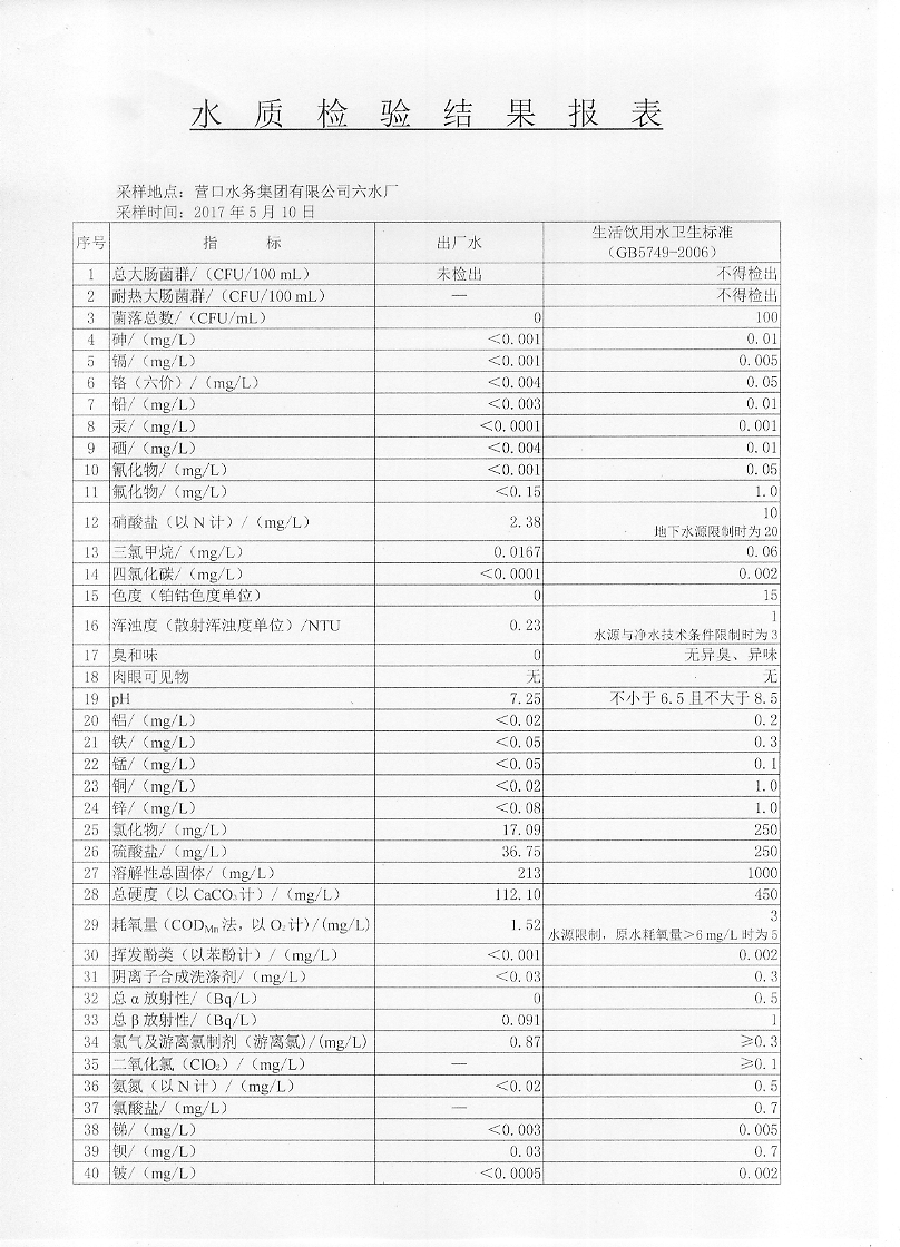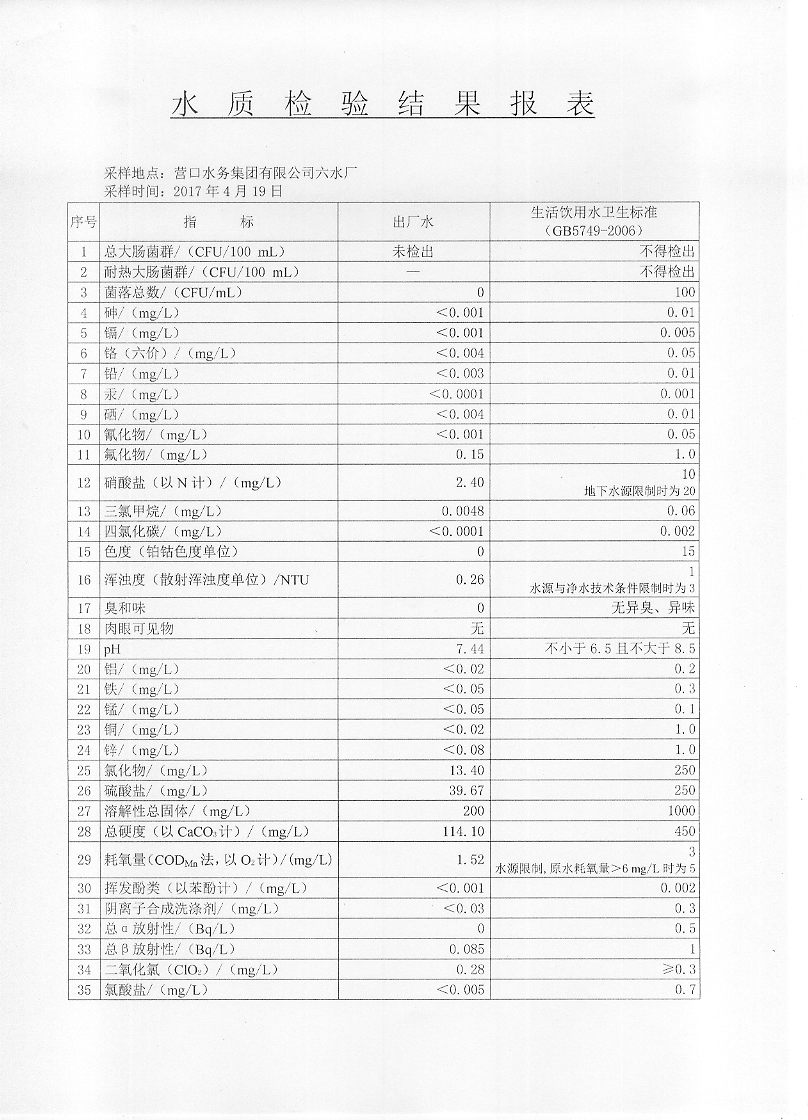 2017年二季度水質檢驗報告