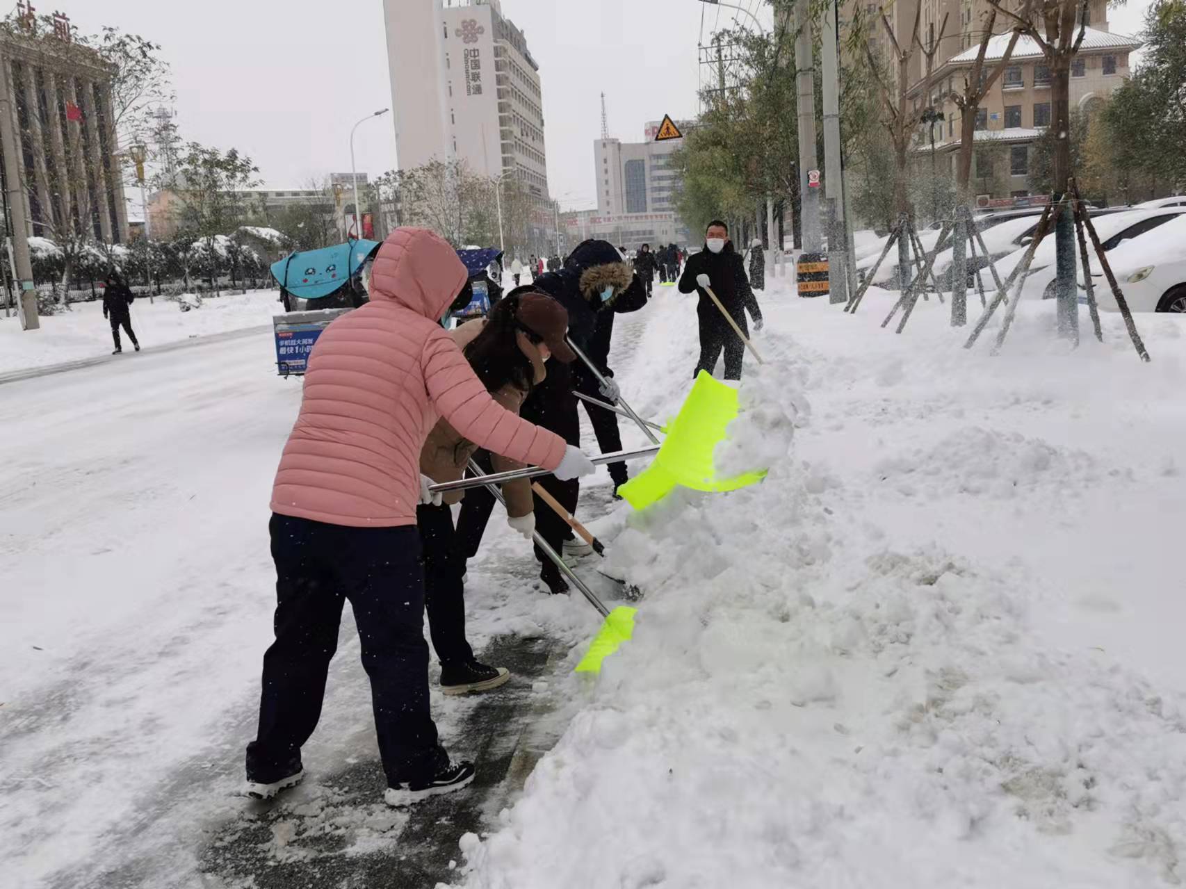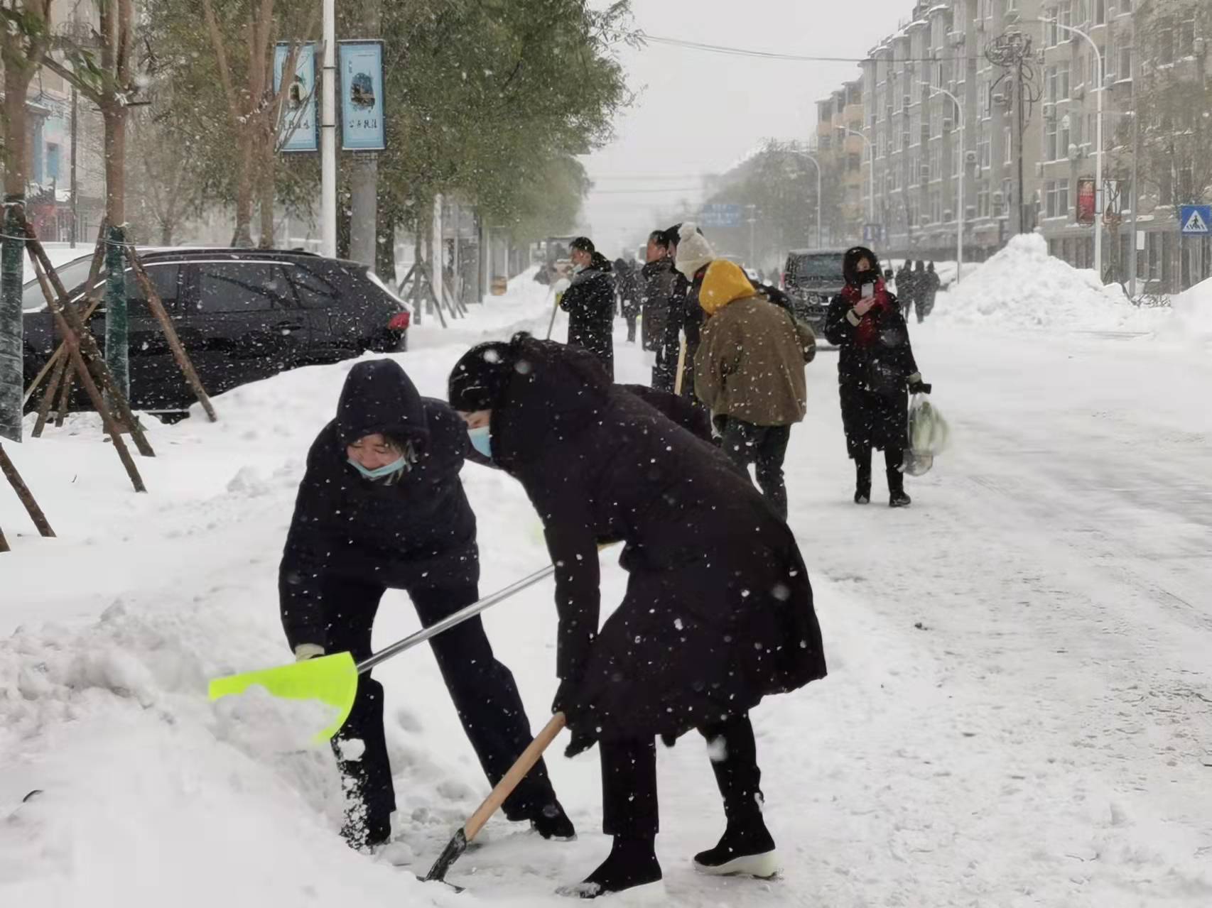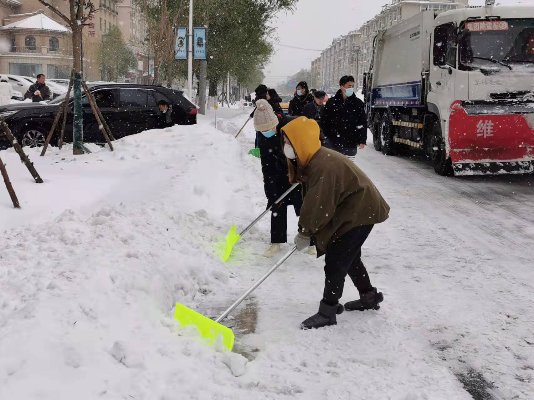 不懼嚴(yán)寒,頂雪前行。11月8日清晨,水務(wù)集團(tuán)黨委書記、董事長張業(yè)維親臨現(xiàn)場指揮除雪,集團(tuán)出動鏟車12臺,卡車24輛,挖掘機1臺,4支除雪突擊隊分成20多個除雪小組,從新興大街西環(huán)路口到東新路路口,每間隔30米都能看到水務(wù)職工忙碌的身影,大家不畏嚴(yán)寒,埋頭苦干,不停揮舞手中的除雪鍬,冒雪前進(jìn),做到邊下邊清不間斷除雪。